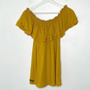 Matilda Jane ruffle drop shoulder boat neck mustard yellow blouse - Women’s size