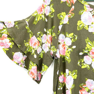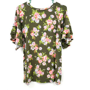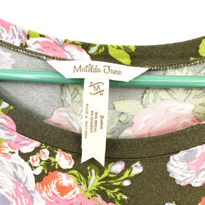 Matilda Jane size Medium green pink floral short sleeve top tee flutter sleeve