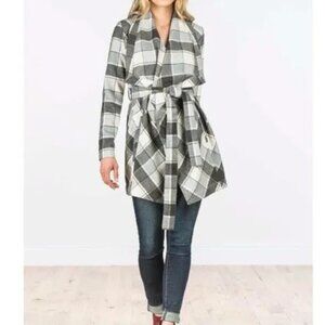 Matilda Jane women's xs check it twice black white grey tie plaid jacket NWT