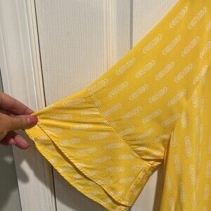 Matilda Jane yellow button down short sleeve tunic top size Large