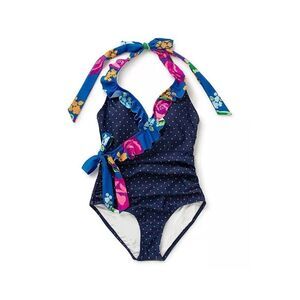 Matilda Jane Navy Sandcastle Queen Halter One-Piece Size M Polka Dot Floral Ruched