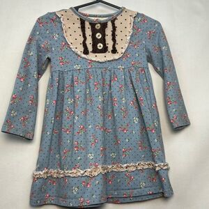 Matilda Jane blue and brown Dottie long sleeve print knit dress EUC
