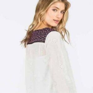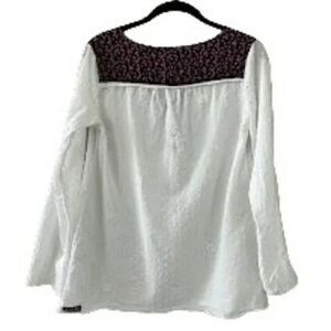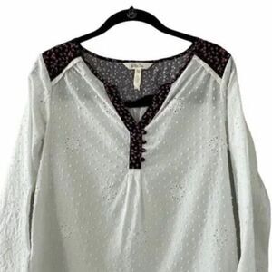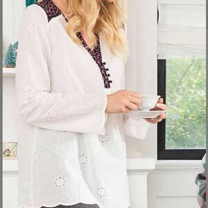 Matilda Jane Long Sleeve White Eyelet w/ navy floral trim popover semi- sheer top size XXL
