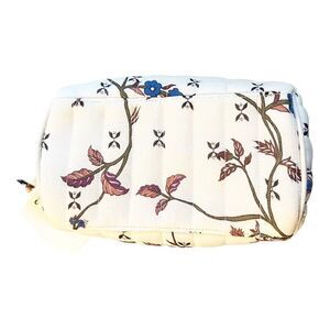 Perfectly sized for travel, work, and beyond! This beautiful quilted floral pouch features original print, a zip top closure, and roomy interior for make up or other on the go essentials.
