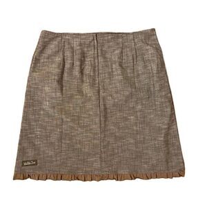 Brown knee length skirt. Hidden back zip. Jersey ruffle hem. Cute for work or church. Office.