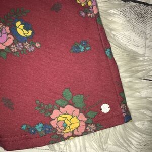 Good, preloved condition. Matilda Jane Clothing MJ Choose Your Own Path Maple Leaf Dress. Long sleeves. Peplum, fit and flare skater dress. Burgundy shade. Floral print. Sweatshirt type material.