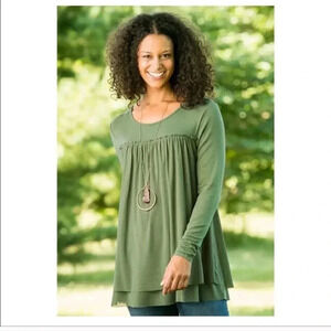 Matilda jane BLOUSE TOP SAGE GREEN LONG SLEEVE RUFFLE CHIFFON TOP SIZE SMALL