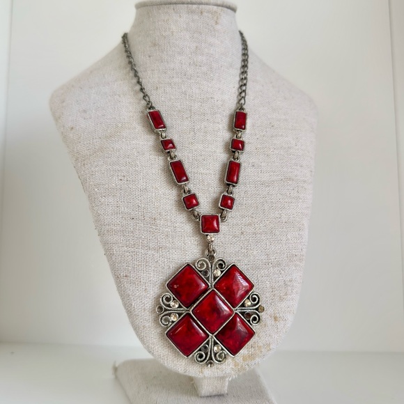 Matinee NECKLACE, Red Turquoise, Rhinestone