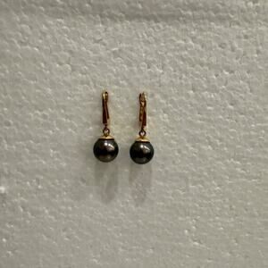 Matira Bora Bora Gold Plated Black Genuine Tahitian Pearl Dangle Earrings