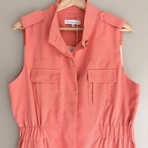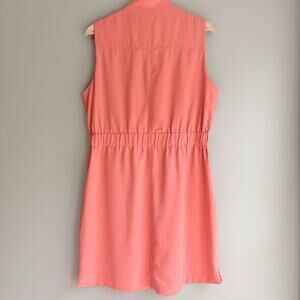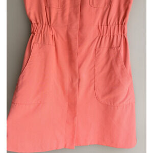 Matison Stone Tencel Button Up Utility Shirt Dress 10 Pocket Lined Coral Peach
