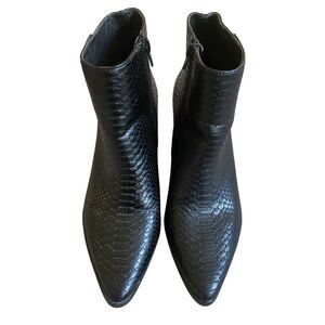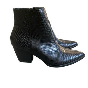 Lulus Matisse Ankle Booties 6.5M Black Snake Pointed Toe Dressy Glam Party Goth. All vegan friendly, man made materials. Condition: new, no box.