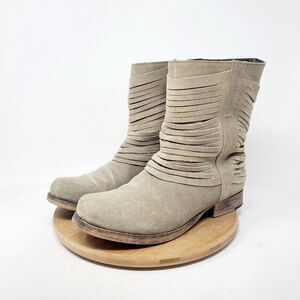 Matisse Ankle Boots Womens 7 Stryke Suede Slashed Western Moto Slouch Taupe
