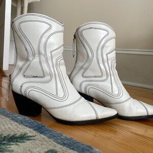 Aries Western Boot in white, Size 8 , in great condition (worn once or twice), have a few scuffs on the heels, toes, and a scratch on the side but still do look great. all their imperfections should be pictured!