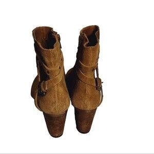 Matisse Camryn Suede Studded Harness Ankle Boots Cognac NWOB 8.5