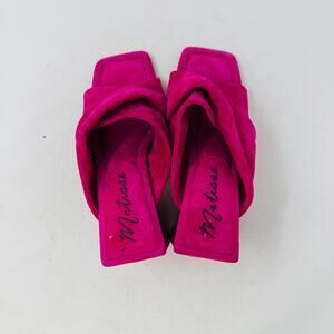 Matisse Dawson sandals in bold hot pink suede. Features wide criss-cross straps, square toe, and sturdy block heel. Women’s size 7M. A statement pair perfect for parties, nights out, or adding a pop of color to any look.
