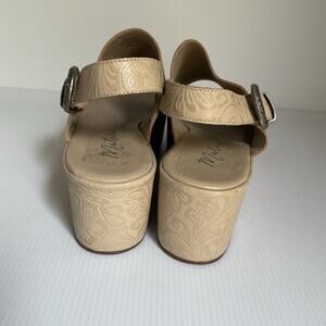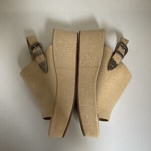 Matisse Embossed Wedge Sandals Size 9 Western Buckle Beige Platform Made in Brazil