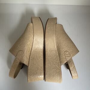 Matisse Embossed Wedge Western Sandals Leather Beige Platform Made in Brazil Sz9