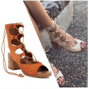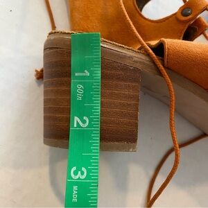 These Matisse Expo Gladiator chunky heels feature a vibrant orange color and a functional lace-up front, offering a unique blend of style and comfort. The chunky wooden block heel provides stability, while the open-toe design adds a touch of elegance. Perfect for casual occasions, these shoes combine a vintage-inspired silhouette with modern flair.