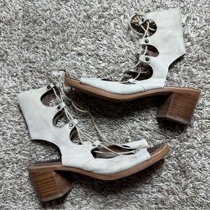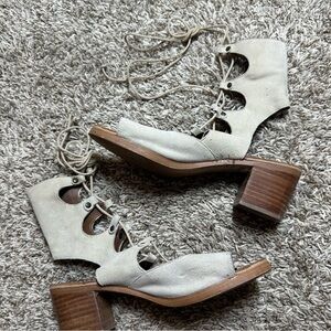 Tags: matisse, lace up, bootie, sandal, suede, block heel, casual, gladiator