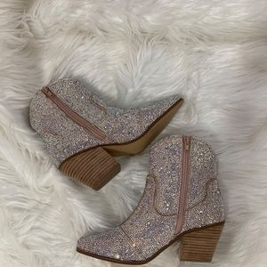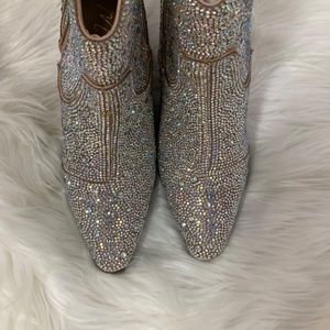 Western-inspired ankle boot with all-over rhinestone detail.