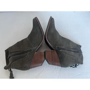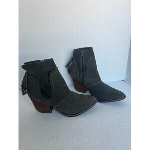 Matisse Laney Dark Gray Suede with Tassel Block Heel Side Zip Ankle Boots Sz 8M
