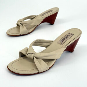 Vintage Matisse heeled sandals in a chic beige leather with a knotted strap design and stacked cone heel. Made in Brazil and marked size 7.5 M, these sandals channel effortless Y2K and resortwear energy. Perfect for vacation looks, summer events, or adding a retro twist to minimalist outfits.
