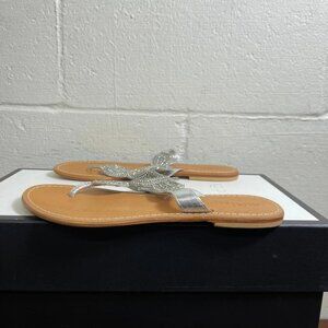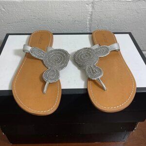 Matisse Leather Silver Rhinestone Sandals Thong Slip On Women's Size 8 US