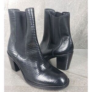 Matisse Mesmerize Chunky Heel Boots Women's 7.5 Black Snake Leather Elastic Gore