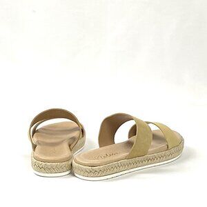 The Matisse Mixer Double Band Slide Sandal has a chic and minimalist vibe with an easygoing and slightly elevated style. Made in Italy with quality craftsmanship, it's ideal for everyday wear. Tan Suede Leather. Size 9.