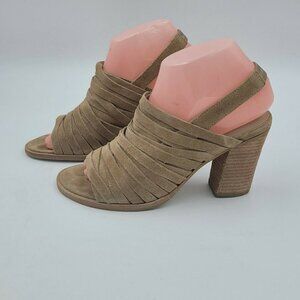 Matisse Mummy Sling Tan Suede Slingback Peep Toe 3" Block Heel Bootie Size 7M