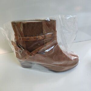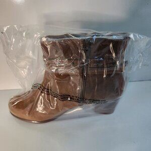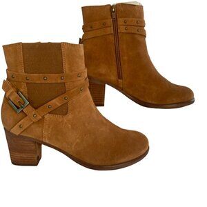Matisse NIB Camryn Cognac Suede Ankle Boots Size 10W . Inside Zip, Gusset Sides, 3" Stack Heel, Strap Detail With Studs, Beautiful High Quality Boots