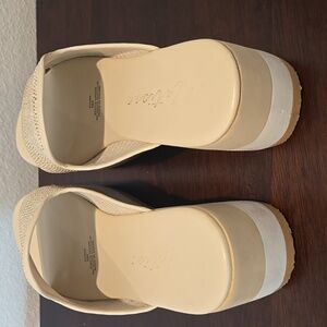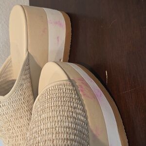 Please look at all pictures. There are pink stains on them. I only wore them a couple of times. I don't know what the pink stains are.
