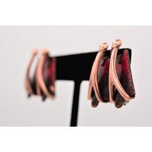 Matisse Renoir Vintage Copper Clip On Earrings Red Black Enamel Signed 60s BinZ