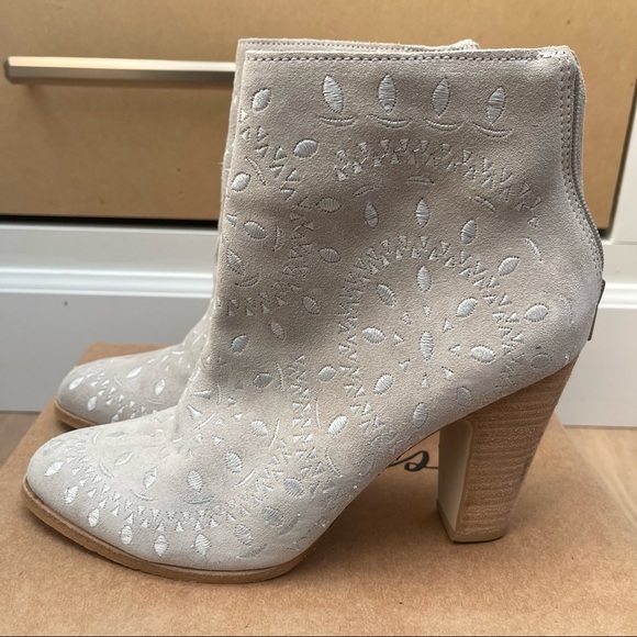 Small red/pink mark on right bootie (looks like it’s from the paper wrap.