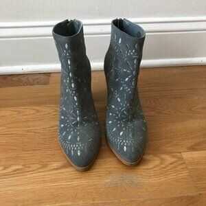 Matisse Springfield Embroidered Suede Ankle Booties Dusty Blue