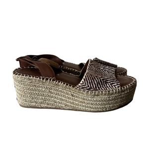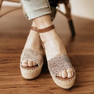 Bold prints add to the fierce appeal of the Trapeze, a chic, summery sandal lofted by a chunky espadrille platform wedge.