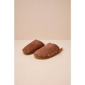 Matisse Upstate Tan Suede Leather Shearling Studded Mule Slides