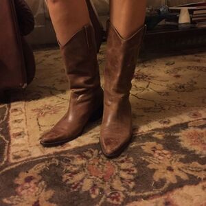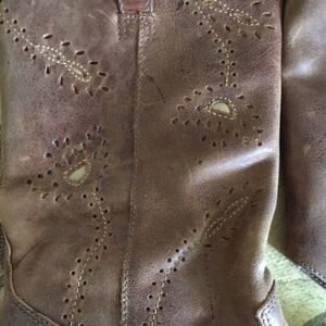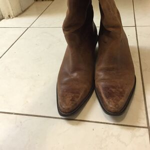 Distressed brown, soft in good condition, soles are very good, having embellished stitching (look at picture). Made in Brazil