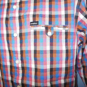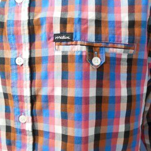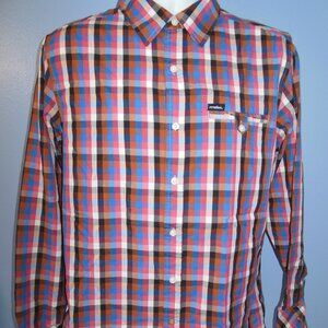 Matix Marc Johnson Signature Series Blue Pink Brown Check/Plaid Long Sleeve Shirt Size Medium