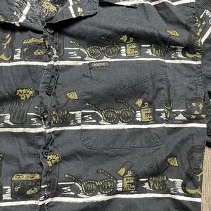 Matix Men’s Black Tropical Short Sleeved Button Down Shirt, size medium. In grey used condition. Just wrinkly.