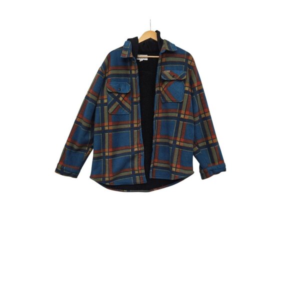 Matix Plaid Polar Fleece Hooded Sherling Jacket Sz XL
