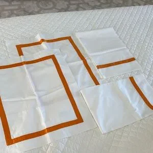 Four Matouk Lowell tangerine items.