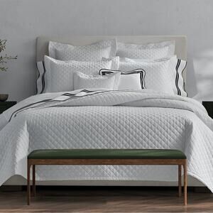 Gemma is the quintessential quilt for those who prefer a crisp, cotton percale over sateen’s sheen. Gemma sports a simple diamond pattern finished with self-piping and has a lofty look and easy drape.