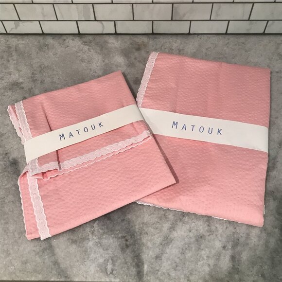 Matouk Twin Blanket Cover + Standard Sham Plisse Style 026 Pink Lace Made USA