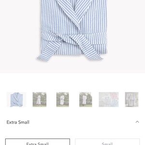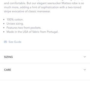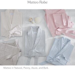 Elegant striped robes by Matouk. Available in natural, peony, azure, and bark. Soft and comfortable. Sealed in a factory clear bag, all tags are attached!