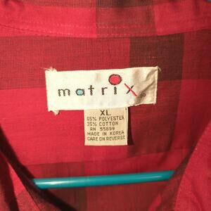 Matrix XL Men’s Red Black Plaid Long Sleeve Button Shirt Korea 65/35 Poly Cotton