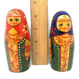 Matryoshka Russian Chime Doll Vintage Hand Painted Roly Poly Folk Art Set of 2