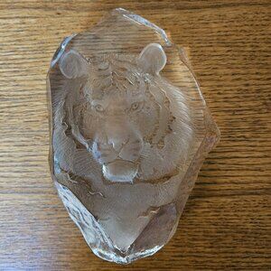 Mats Jonasson Sweden Full Lead Crystal Tiger Head SIGNED Sculpture