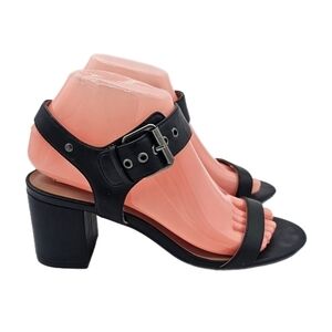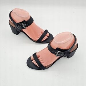 Matt And Nat Elysa Womens Vegan Block High Heels Buckle Strap Sandals Black 7.5