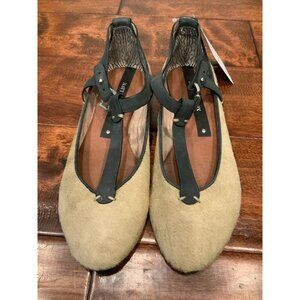 Matt Bernson Anthropologie Tan Hair T-Strap Flats W/ Ankle Buckle, Size 7 (US)